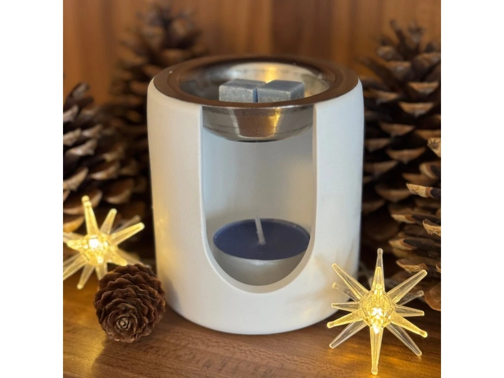 Kouzelná aromalampa je ručně odlévaná z keraflotu a zdobená technikou decoupage s jemnou plastickou strukturou, která připomíná sníh.