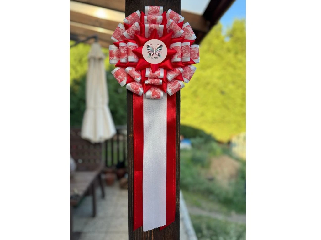 Tato slavnostní kokarda upoutá pozornost svou výrazností a propracovaným provedením. Je ideální jako hlavní ocenění na výstavách psů, slavnostní události, tematické dekorace nebo jako reprezentativní dárek.