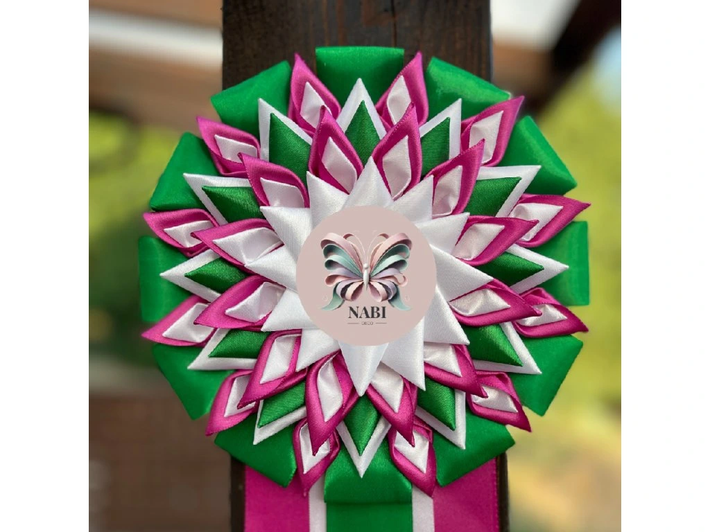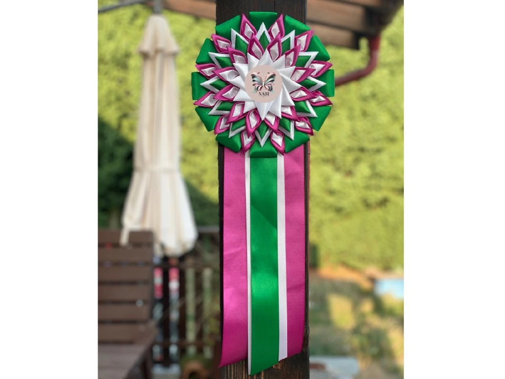 Průměr: cca 20 cm, délka kokardy je cca 55 cm