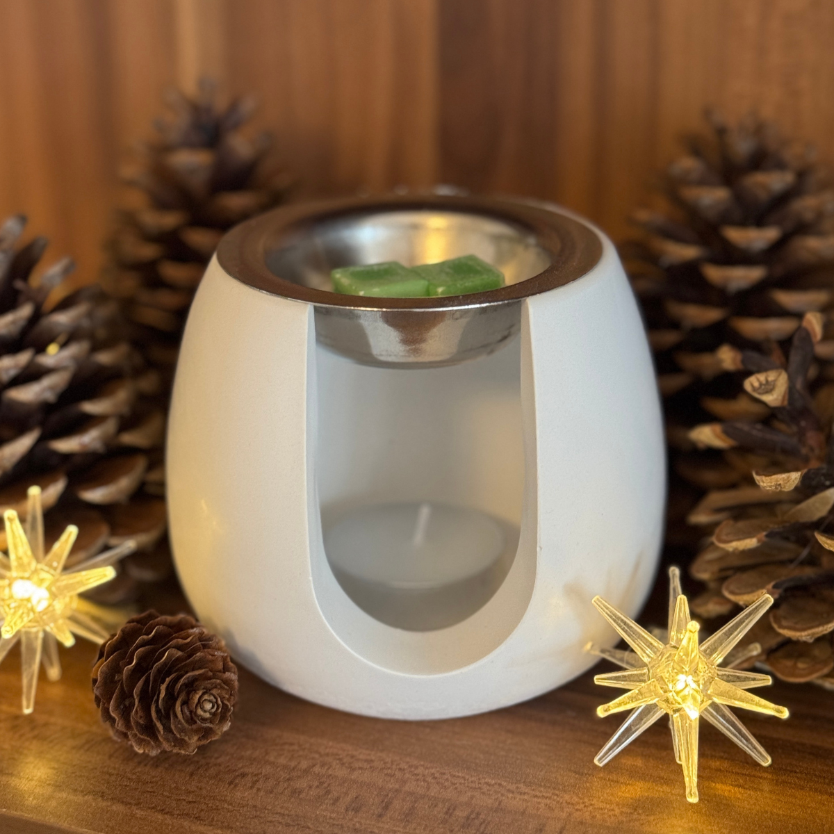 Elegantní ručně odlévaná aromalampa s krásným motivem zlatých ozdob. Přední strana lampy je zdobena technikou decoupage, povrch je hladký a matný. Vrchní kovová miska slouží k ohřevu vonného vosku nebo esenciálního oleje, spodní část je určena pro čajovou svíčku.