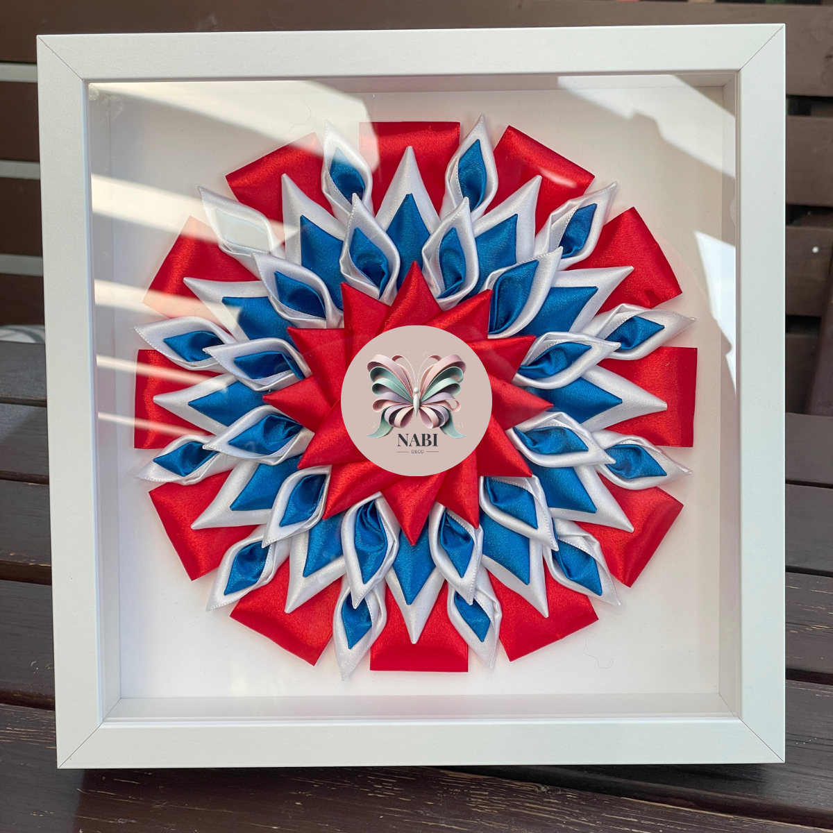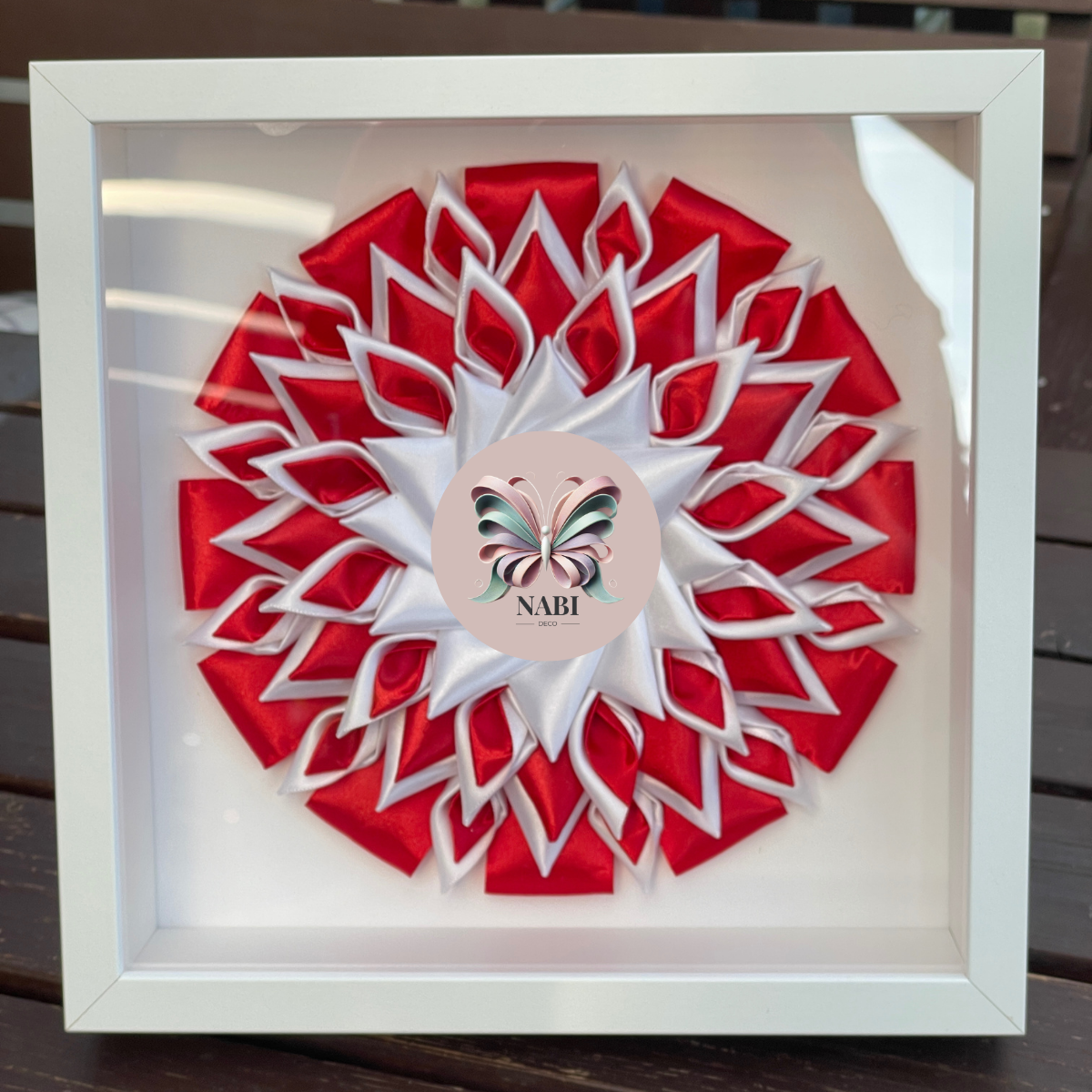 Materiál: kvalitní saténové stuhy, rám s průhlednou čelní deskou